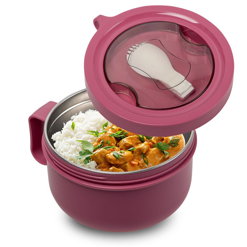 - Castronul de metal din interior se poate deşuruba şi scoate afară - fără acest castron, termosul se poate folosi şi în cuptorul cu microunde