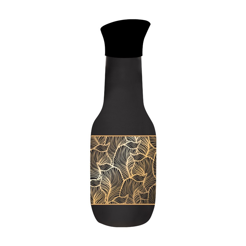 Carafă elegantă din sticlă mată, împodobită cu un motiv încântător negru-auriu. Accesoriu stilat pentru masă, ideal pentru a servi apă, suc sau vin. O combinaţie de funcţionalitate şi design de lux.