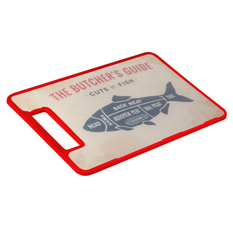 Suprafaţa antialunecare o face să nu se mişte în timpul porţionării, ceea ce sporeşte confortul şi siguranţa în timpul lucrului. Împodobită cu un motiv subtil sub forma unui peşte, combină funcţionalitatea cu estetica. Prevăzută cu un mâner practic care facilitează mânuirea şi agăţarea ei, pentru a fi mereu la îndemână.