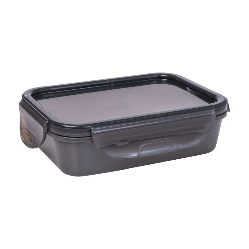 Un recipient modern cu încuietori rezistente e o modalitate fiabilă de a menţine ordinea în bucătărie, la serviciu sau în călătorie. Datorită capacului etanş şi clemelor stabile, protejează alimentele de scurgerile nedorite şi de pătrunderea aerului, menţinându-le proaspete mai mult timp. Fabricată din material durabil, rezistentă la deteriorări şi temperaturi, este perfectă pentru păstrarea prânzului, sandvişurilor, gustărilor sau a resturilor de mâncare. Perfectă pentru frigider, dulap sau geantă. Designul minimalist şi culoarea închisă îi conferă un aspect elegant şi modern.