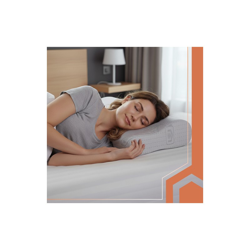 Perna ortopedică cu spumă cu memorie asigură un somn sănătos și odihnitor și susținere completă pentru coloana cervicală. Forma conturată se adaptează curbelor naturale ale corpului, eliminând tensiunea din gât și umeri. Ideală pentru dormitul pe o parte și pe spate, garantează poziționarea corectă a capului și confort maxim pe tot parcursul nopții. Husa respirabilă, antialergică, cu ioni de argint, asigură igiena și prospețimea, iar husa detașabilă permite spălarea ușoară.