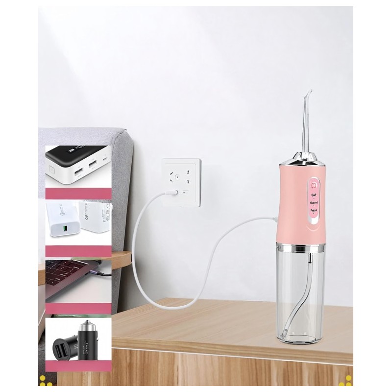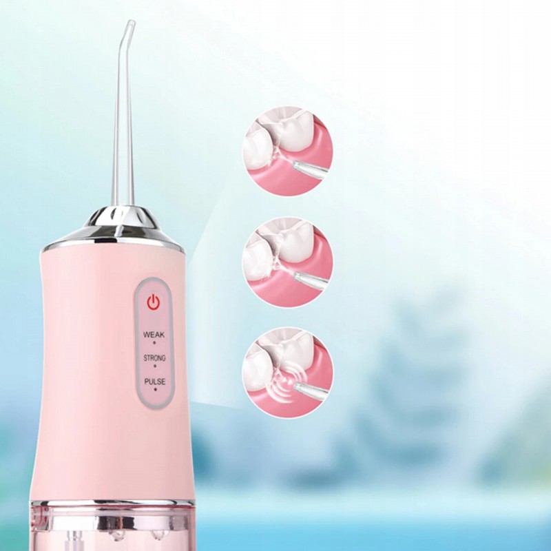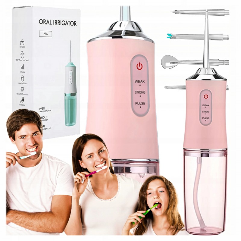 Irigatorul dentar completează perfect periuța de dinți. Jetul de apă sub presiune curăță eficient placa și resturile alimentare chiar și din zonele greu accesibile. Cu rezervor de 220 ml și alimentare prin acumulator, este ideal pentru acasă și în călătorii.