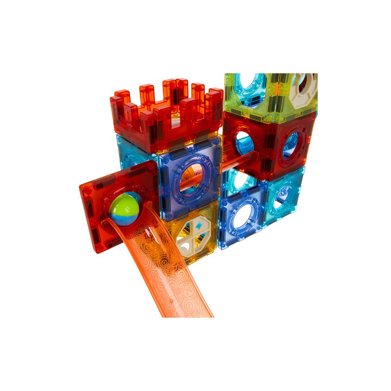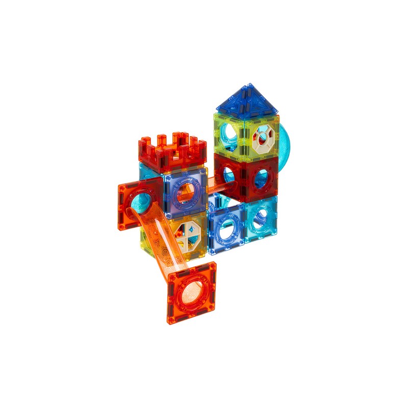 Ce conţine setul? Pachetul include piese magnetice pentru construcţia pistei pentru bile, bile şi elemente de pistă, precum şi unelte şi accesorii care ajută la realizarea diferitelor structuri.