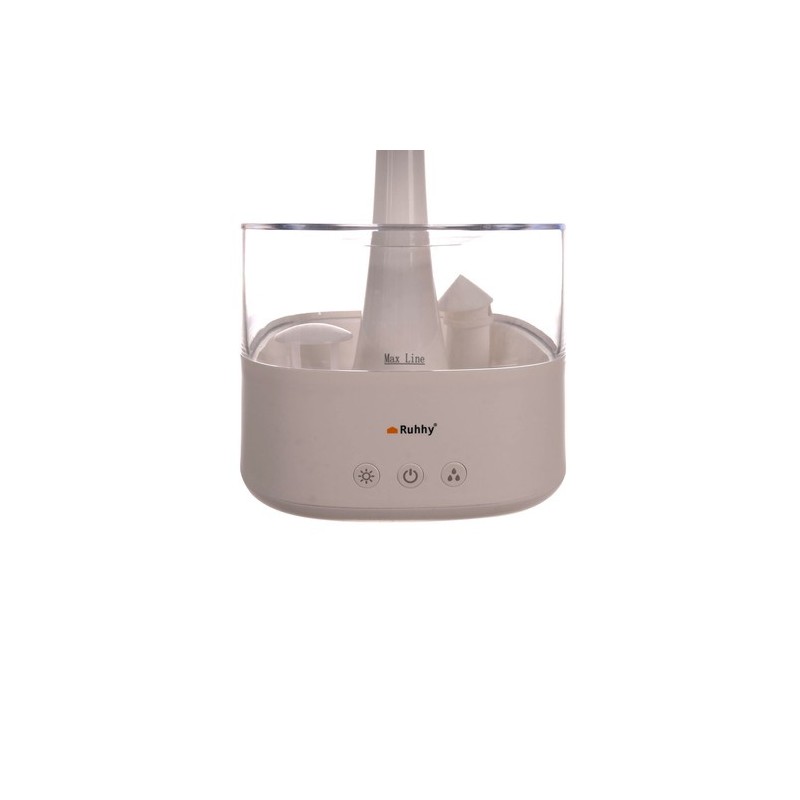 Designul modern în formă de ciupercă şi recipientul transparent cu două elemente decorative transformă umidificatorul într-un obiect de decor pentru dormitor, living sau camera copilului. Cele 6 LED-uri oferă 8 moduri de iluminare, cu posibilitatea de a alege o singură culoare – alb, roşu, galben, verde, albastru, mov sau roz – sau schimbare automată a culorilor. Dispozitivul poate funcţiona şi ca simplă lampă de noapte, fără activarea funcţiei de umidificare, creând o lumină plăcută în încăpere.
