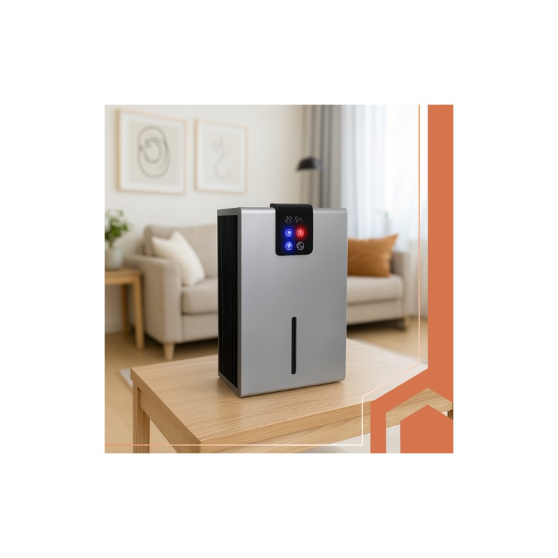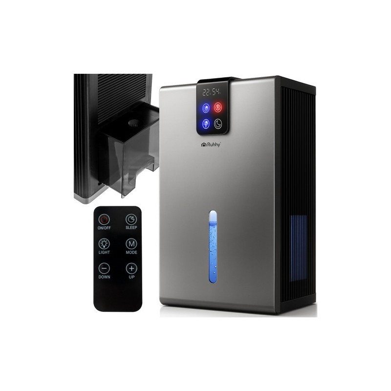 Dezumidificatorul de aer elimină eficient excesul de apă din aer, reduce umiditatea, ajută la limitarea apariţiei mucegaiului, fungilor şi mirosurilor neplăcute şi îmbunătăţeşte confortul respirator. Datorită tehnologiei cu modul Peltier, higrometrului şi higrostatului încorporat şi controlului inteligent al umidităţii, dispozitivul funcţionează eficient şi silenţios, consumând doar 90 W. Cele 3 moduri de lucru – dezumidificare, iluminare şi mod de somn – permit adaptarea funcţionării în apartament, birou, baie sau pivniţă.