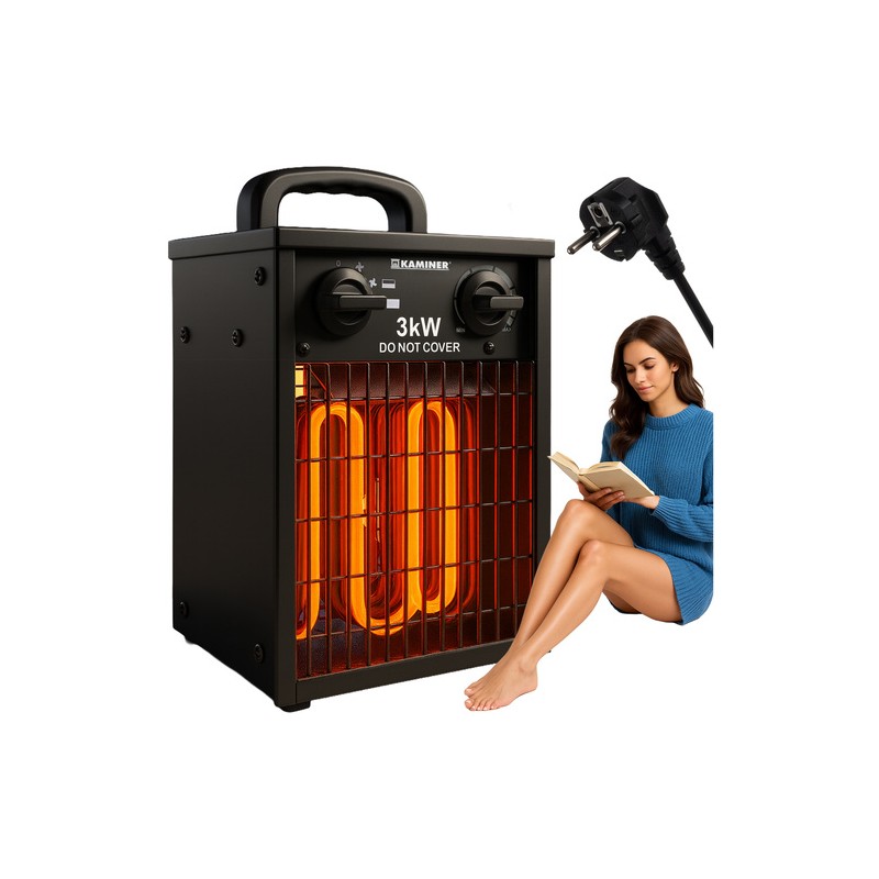 Aeroterma electrică cu termostat este un aparat eficient, care încălzeşte rapid şi în siguranţă încăperi de până la 30 m2. Cele trei moduri de funcţionare – încălzire, răcire şi ventilaţie – permit utilizarea aparatului pe tot parcursul anului: iarna ca sursă suplimentară de căldură, iar în zilele mai calde ca flux de aer mai răcoros. Termostatul integrat menţine temperatura confortabilă în încăpere, iar picioarele stabile, antiderapante, contribuie la o utilizare sigură acasă, la birou, în atelier, depozit sau pe şantier.