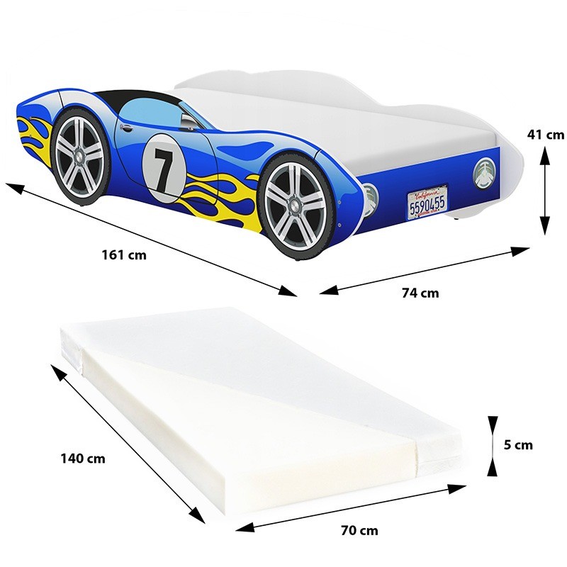 Finisajul albastru şi flăcările dinamice dau un look sportiv, iar forma de maşină de curse aduce un plus de energie şi joacă în camera copilului.