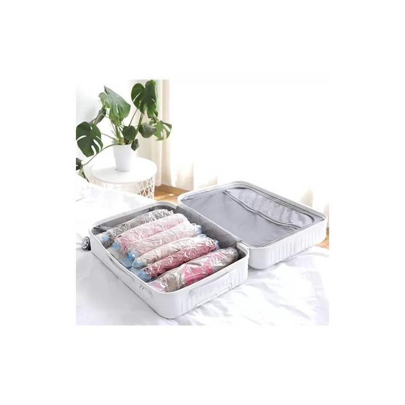 Când ai nevoie de mai mult spaţiu în dulap, în bagaj sau în depozitare, sacii de vid sunt o soluţie simplă şi eficientă. Pui lucrurile în sac, apoi scoţi aerul cu un aspirator obişnuit, iar volumul se poate reduce până la 80%, astfel încât câştigi mult loc. Conţinutul este bine protejat împotriva prafului, murdăriei, apei, umezelii şi moliilor, deci poţi depozita haine sau lenjerii şi în pivniţă, pod ori garaj, fără grija mirosurilor sau a deteriorării. Setul este util la mutări, pentru depozitarea sezonieră, dar şi în călătorii, când ai puţin spaţiu în valiză şi vrei să iei mai multe haine. Sacii sunt reutilizabili şi îşi păstrează proprietăţile după folosire.