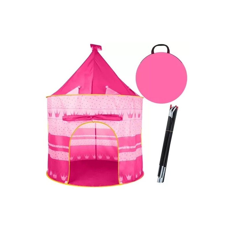 Acest cort roz în formă de castel creează instant o atmosferă de poveste în camera copilului şi oferă un loc special pentru joacă. Poate fi folosit atât în interior, cât şi afară - în grădină, pe terasă, la picnic sau pe plajă - şi poate servi şi ca spaţiu pentru depozitarea jucăriilor. Designul de palat şi culorile atractive încurajează joaca creativă şi exersarea imaginaţiei, iar dimensiunea generoasă permite joaca împreună cu prietenii. Cadrul stabil susţine utilizarea în siguranţă, iar cortul nu are margini ascuţite. Se transportă uşor în husa cu mâner şi se montează rapid: îl scoţi din husă, fixezi cadrul în interior şi în câteva minute este gata.