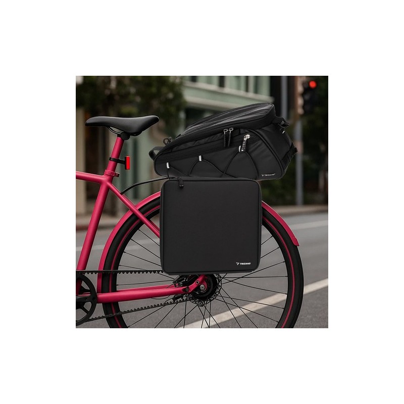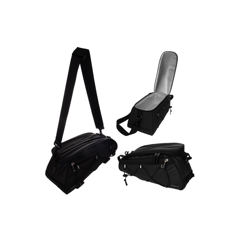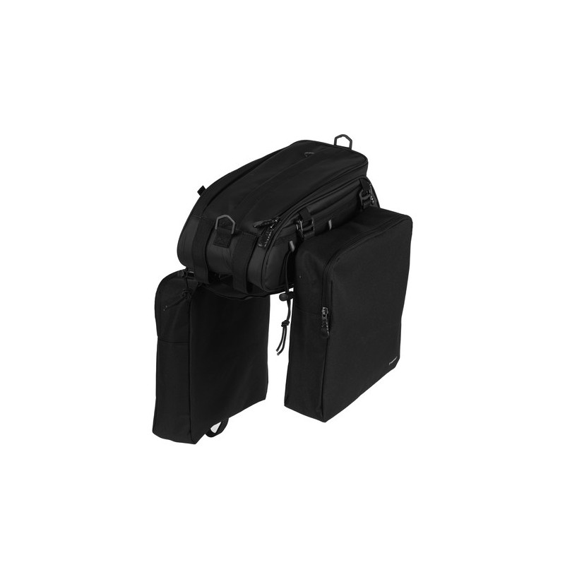 Acest set de 3 genţi îţi simplifică drumurile zilnice şi ieşirile mai lungi. Cu o capacitate de aprox. 16 litri, ai spaţiu surprinzător de generos pentru haine, mâncare, unelte sau documente. Geanta centrală are funcţie termică datorită stratului izolator, care ajută la menţinerea temperaturii conţinutului - o soluţie practică pentru picnic sau o tură cu bicicleta. Setul se fixează stabil pe portbagaj cu ajutorul benzilor tip arici şi al carabinierelor, astfel încât totul rămâne o construcţie unitară, fără joc. Elementele reflectorizante cresc vizibilitatea după lăsarea serii şi în condiţii de lumină dificilă. Construcţia rezistentă la apă face faţă ploii, umezelii şi stropilor, iar genţile sunt aprobate pentru contactul cu alimentele.