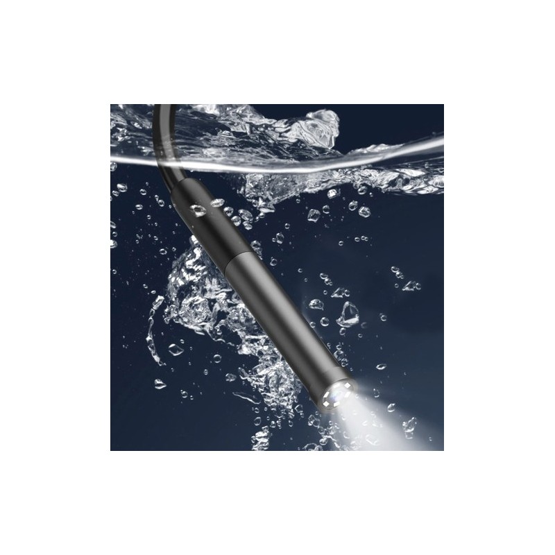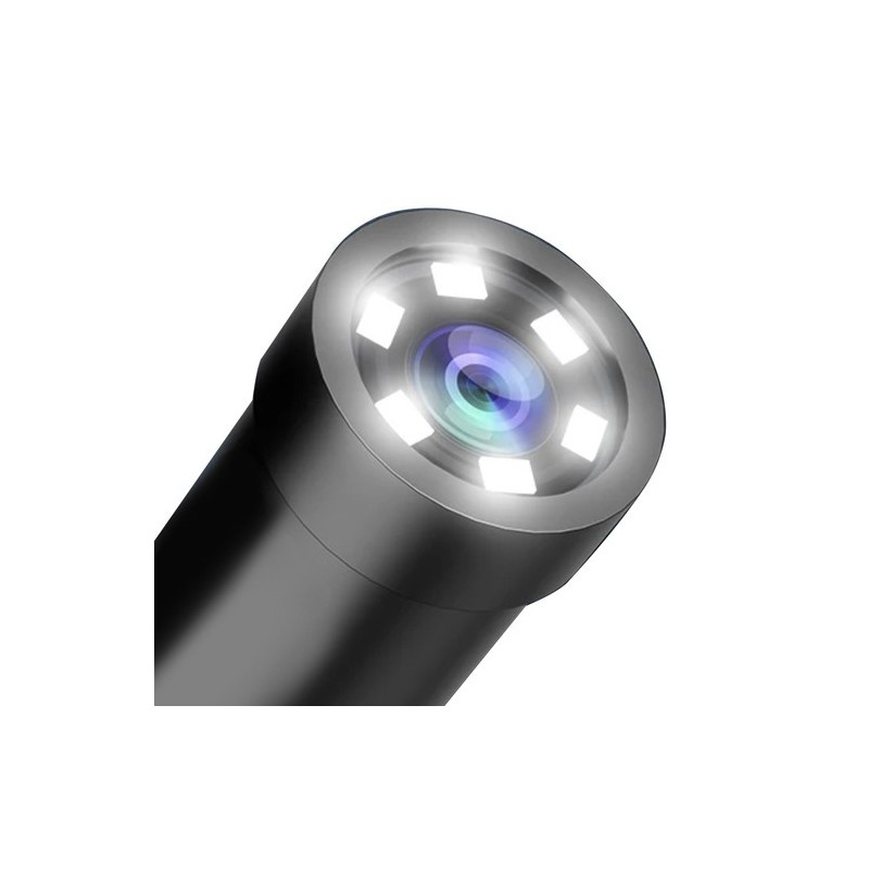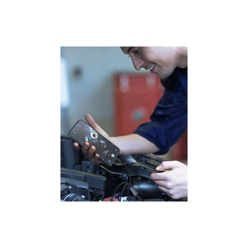 Cameră endoscopică Full HD pentru telefon cu aplicaţie de descărcat. Cablul de 2 m şi cele 8 LED-uri ajută la vizualizarea în locuri greu accesibile, iar cele 3 capete interschimbabile (cârlig, magnet, oglindă) extind modul de utilizare.