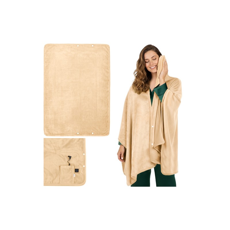 Pelerină electrică pentru spate 160×90 cm, alimentată de la powerbank prin USB. Moale, bej şi prietenoasă cu pielea, oferă confort termic acasă, la birou şi în deplasare - cu 3 trepte de încălzire şi control simplu, dintr-un singur buton.
