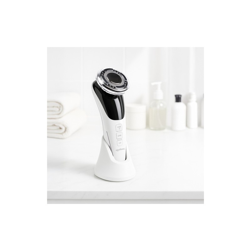 Un dispozitiv pentru îngrijirea pielii acasă, potrivit pentru orice tip de ten - gras, uscat, acneic sau matur. Funcţionează în mod sigur şi neinvaziv, fără ace, fără durere şi fără iritaţii, fiind o opţiune bună dacă îţi doreşti rezultate de îngrijire fără riscuri. Ai la dispoziţie atât cald, cât şi rece: încălzirea susţine o absorbţie mai bună a cosmeticelor, iar răcirea ajută la închiderea porilor şi la reducerea umflăturilor. Aparatul oferă microcurenţi EMS, terapie cu lumină LED (două tipuri: roşu şi albastru) şi vibraţii ultrasonice. Include 5 moduri de lucru: curăţare, răcire, lifting EMS, hidratare şi modul Cool Synthesis. Este fără fir, are afişaj LCD şi este menţionat ca fiind conform cu standardele europene.