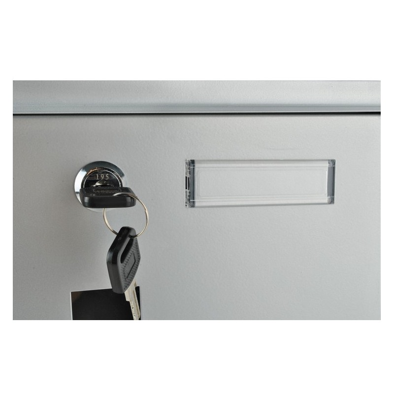 Pachetul include cutia poştală, 4 dibluri de montaj cu şaibe şi 2 chei.