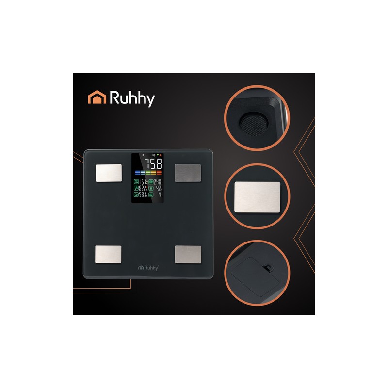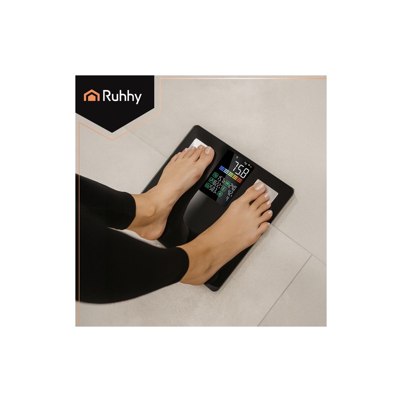 Pentru a măsura parametrii suplimentari ai compoziţiei corporale, este necesară instalarea aplicaţiei Feelfit pe dispozitivul mobil. Pentru rezultate cât mai relevante, se recomandă utilizarea zilnică la aceeaşi oră. Pentru curăţare, foloseşte o lavetă moale, umezită.