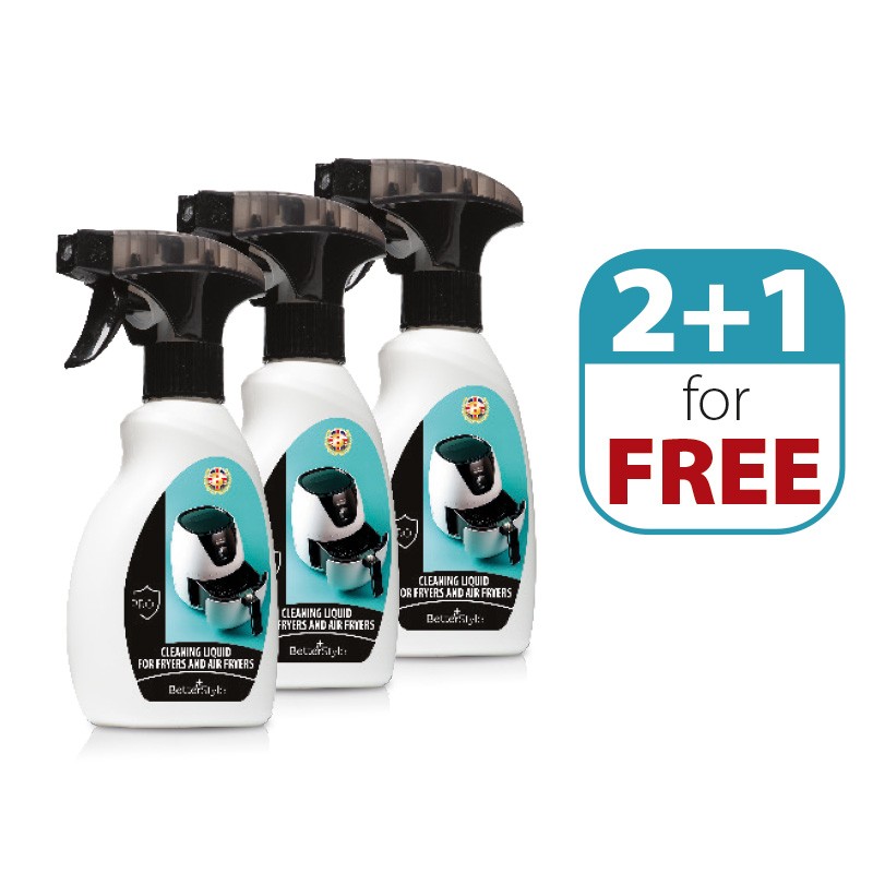 Setul de trei soluţii pentru curăţarea friteuzelor şi a airfryerelor reprezintă un suport indispensabil pentru igiena bucătăriei dumneavoastră. Produsul se remarcă printr-o acţiune rapidă şi eficientă, eliminând cu succes grăsimea, resturile arse şi alte murdării dificile. Datorită acestuia, curăţarea aparatelor electrocasnice devine comodă şi necesită mult mai puţin timp. Este soluţia ideală pentru cei care îşi doresc echipamente strălucitoare, fără urme sau depuneri.