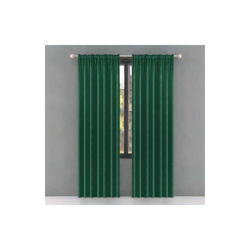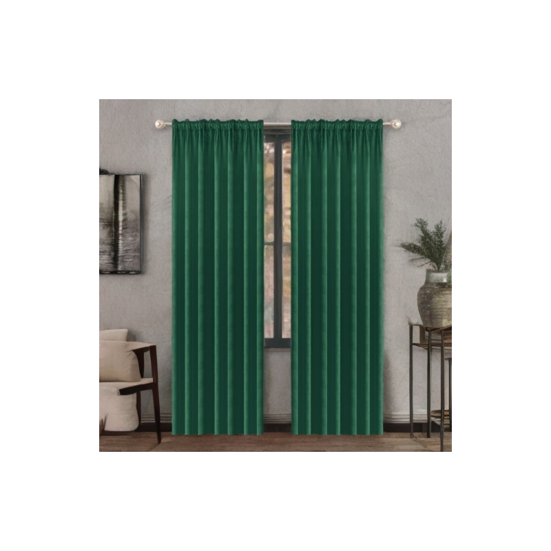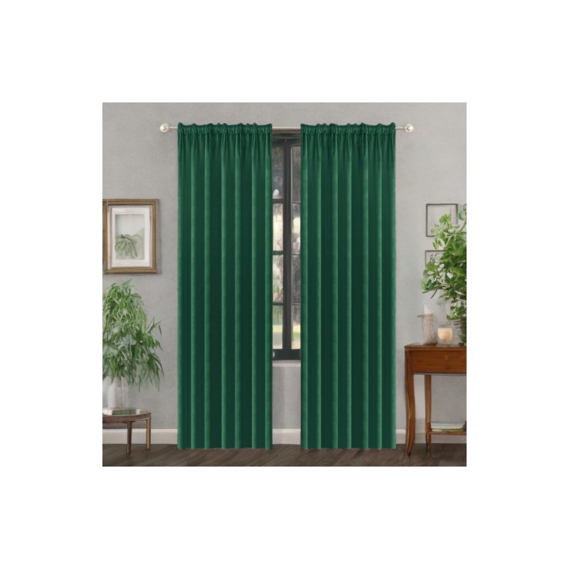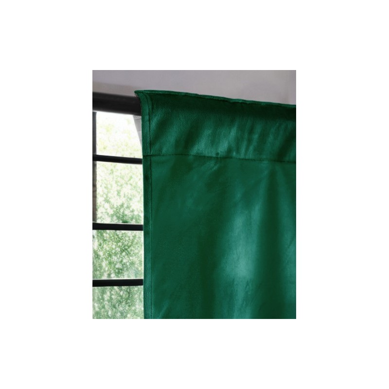 Draperie din catifea verde sticlă, opacă, 140 x 250 cm, cu bandă pentru încreţire, care oferă eleganţă, protecţie împotriva luminii şi mai multă intimitate în interior.