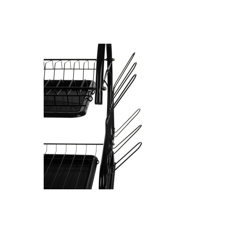 USCĂTORUL DE VASE PE DOUĂ NIVELURI FOXY BLACK e o combinaţie de funcţionalitate, durabilitate şi stil modern. Confecţionat din fier de înaltă calitate, acoperit cu vopsea pulbere, se caracterizează prin rezistenţa la umezeală şi coroziune, iar eleganţa stratului de vopsea neagră conferă interiorului un aspect industrial, de designer.