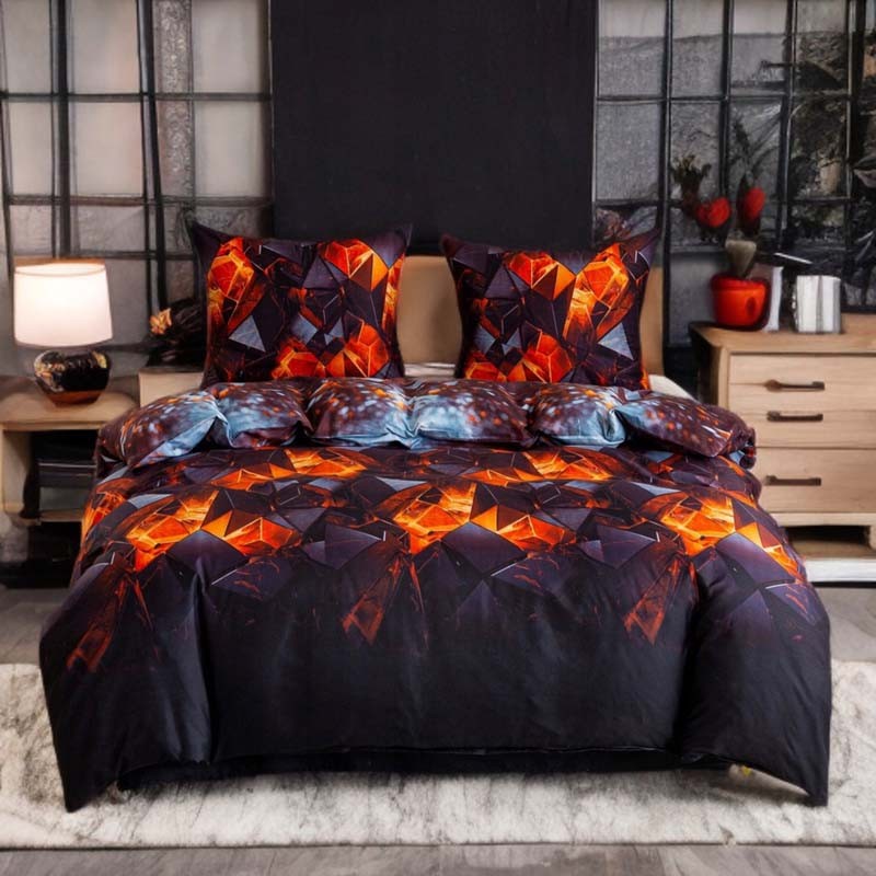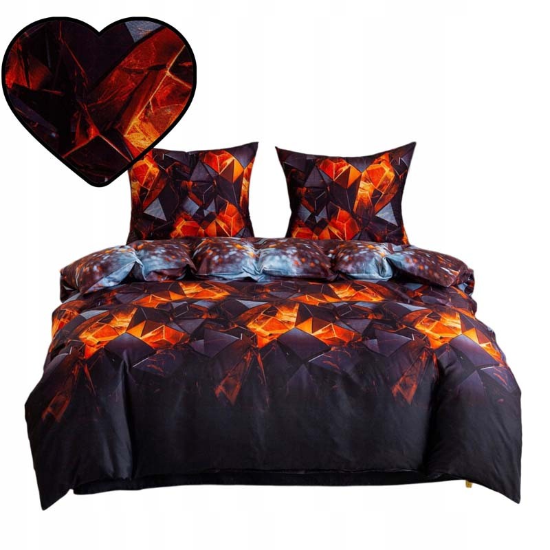 Setul de lenjerie din bumbac satinat cu model Cristale de foc oferă fineţe, confort la somn şi un design expresiv. Ideal pentru dormitoare moderne şi ca idee de cadou.