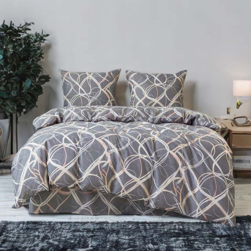 Setul de lenjerie din bumbac satinat cu model Volute oferă fineţe, confort la somn şi un accent decorativ. Ideal pentru un dormitor elegant şi ca idee de cadou.