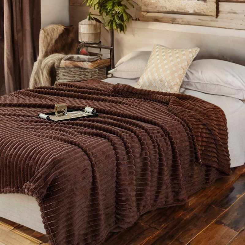 Pătura maro cu dungi 3D, 160 x 200 cm, aduce instant căldură, confort şi un look elegant - este catifelată la atingere şi se potriveşte perfect pe canapea sau ca pled decorativ pe pat.