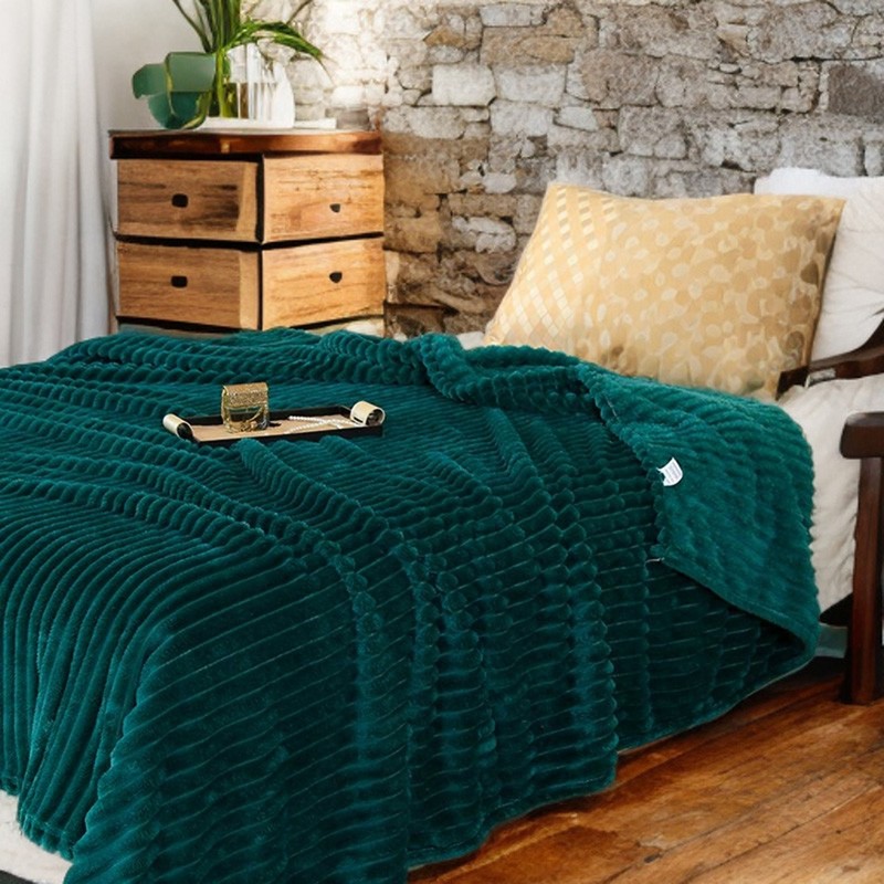 Pătura verde cu dungi 3D, 160 x 200 cm, aduce instant căldură, confort şi un look elegant - este catifelată la atingere şi se potriveşte perfect pe canapea sau ca pled decorativ pe pat.
