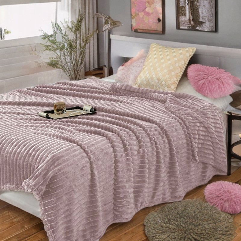 Pătura roz cu dungi 3D, 160 x 200 cm, aduce instant căldură, confort şi un look elegant - este catifelată la atingere şi se potriveşte perfect pe canapea sau ca pled decorativ pe pat.