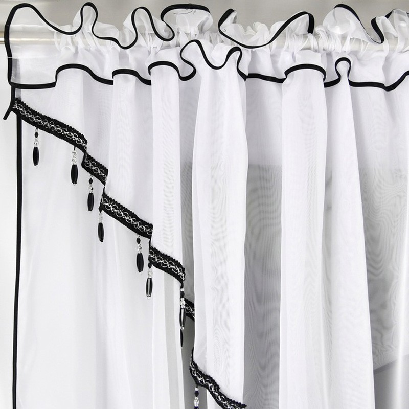 Da, voalul alb şi mărgelele elegante se integrează uşor în ambele tipuri de amenajări, iar bordura neagră adaugă un accent modern.
