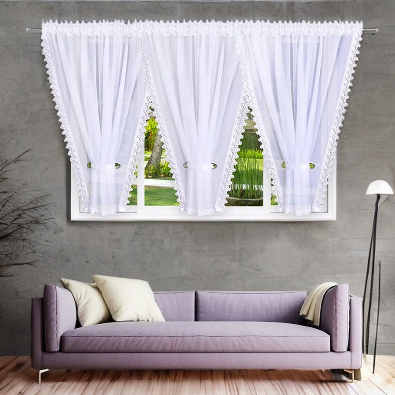 Perdea modernă din voal uşor, finisată cu gipiură elegantă - oferă lumină, lejeritate şi un plus de stil pe ferestre mari. Se potriveşte perfect în living, dormitor sau birou.