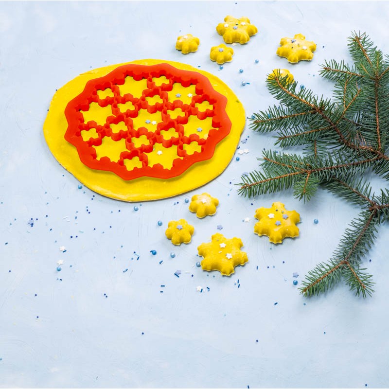 Cu o singură mişcare, puteţi decupa 19 fulgi de zăpadă de diferite dimensiuni din aluat.