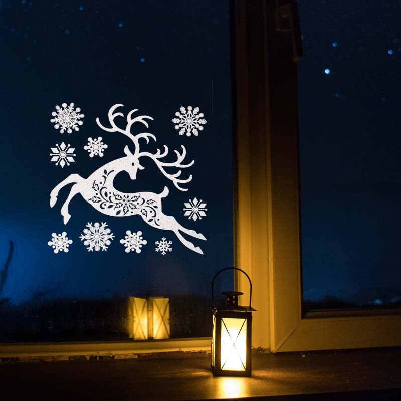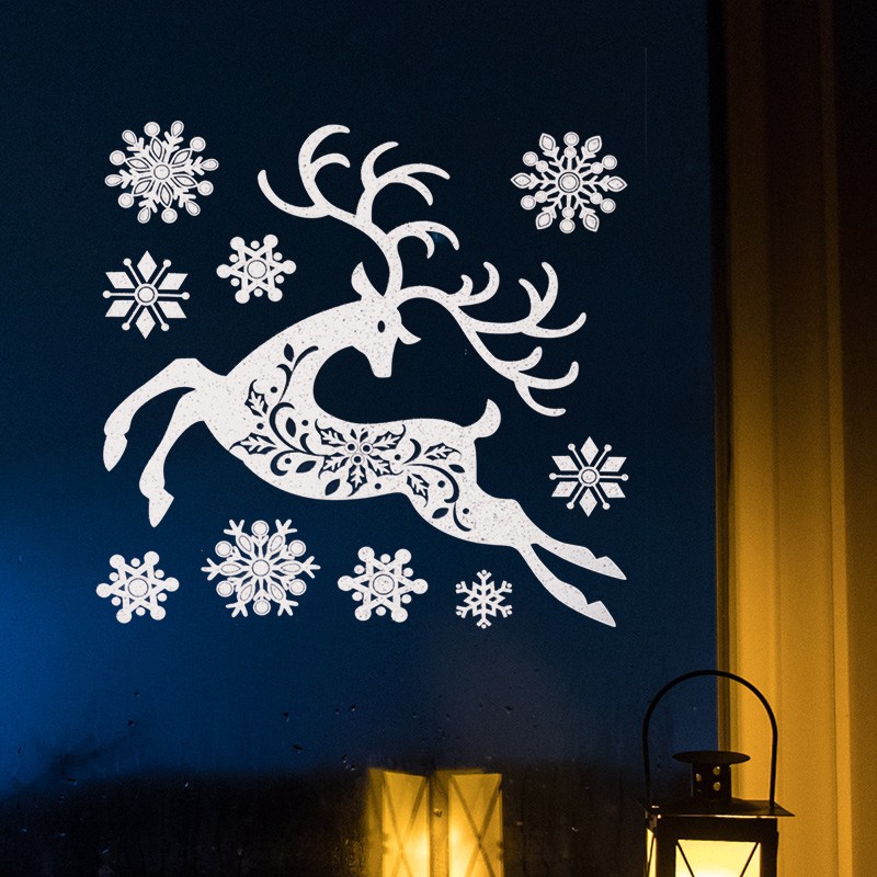 Autocolante pentru fereastră Ren şi fulgi de zăpadă