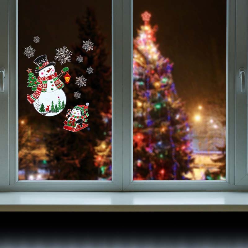 Autocolante pentru fereastră Om de zăpadă şi fulgi de zăpadă 3D
