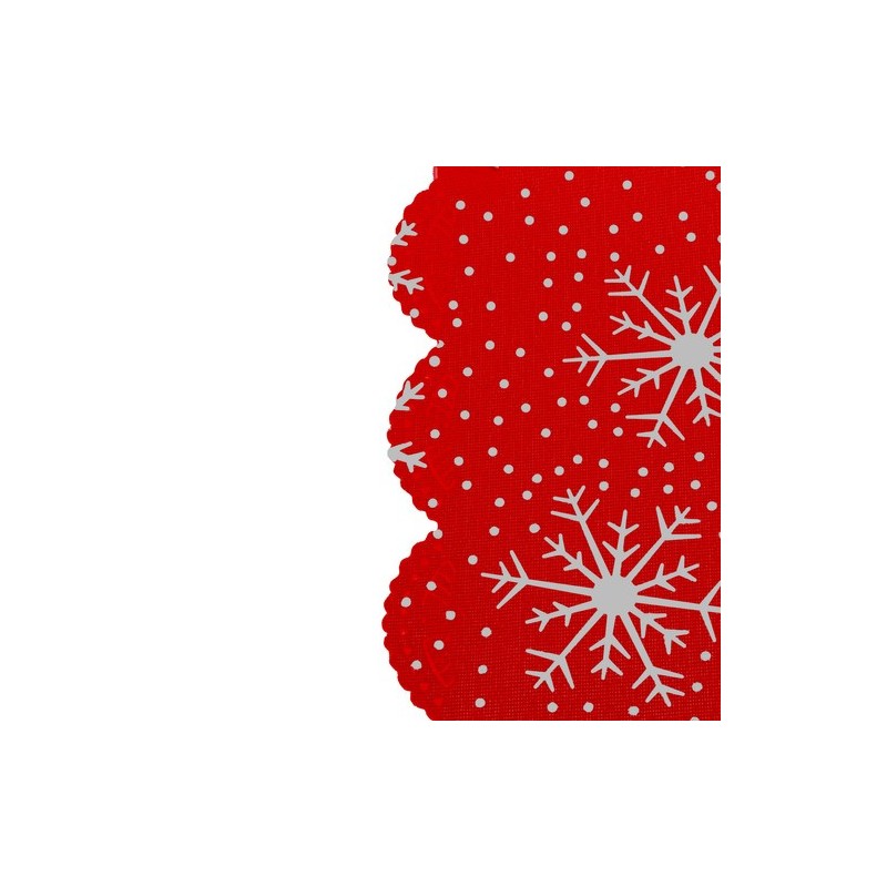 Decoraţiune elegantă - modelul delicat de fulgi de zăpadă albi şi puncte contrastează frumos cu fundalul roşu
