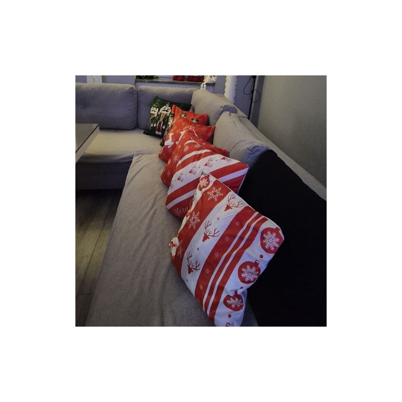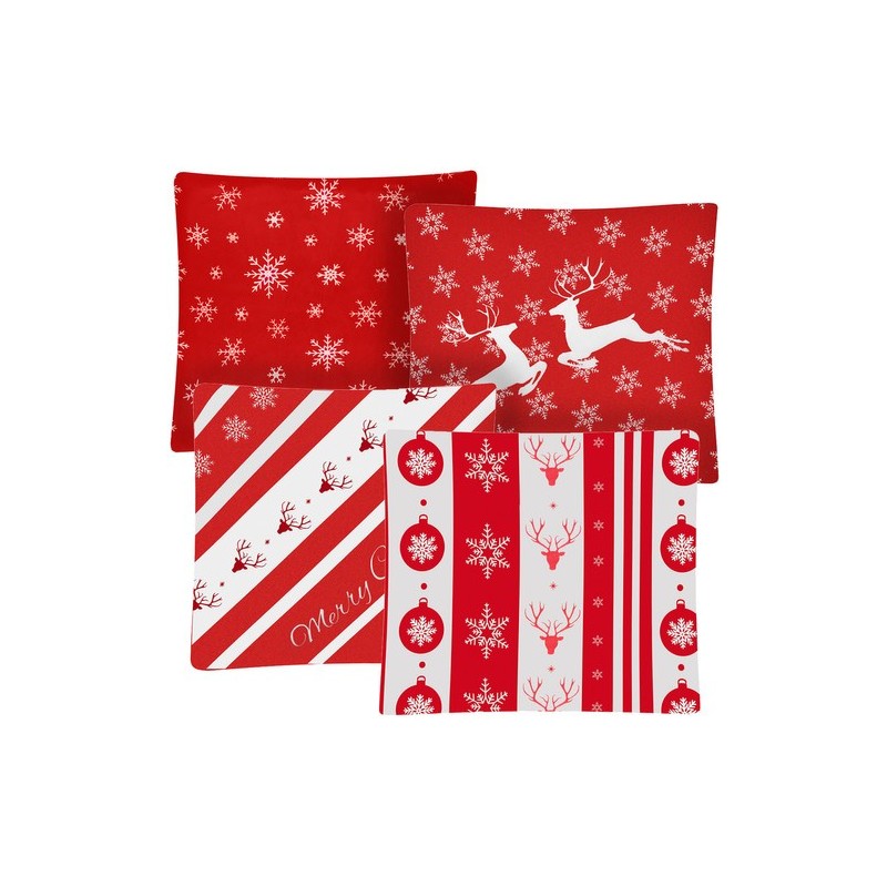 Patru huse de pernă din pluş cu modele festive care vor aduce confort şi eleganţă în sufrageria ta.