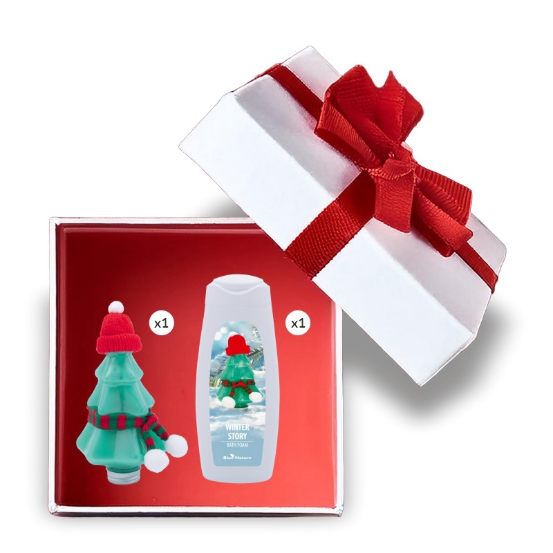 Boxul conţine un spumant de baie şi o sticlă decorativă "Brad" cu volum de 400 ml.