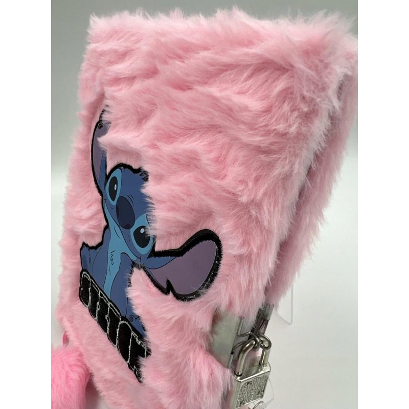 Jurnal de pluş Stitch Pink cu lacăt - cu amuzantul personaj Stitch pe fundal roz, şi semn de carte cu pompon. Are 96 file dictando, şi e ambalat într-o cutie transparentă din PVC. Ideal pentru secretele, însemnările şi ideile copiilor şi tinerilor.