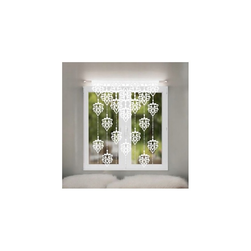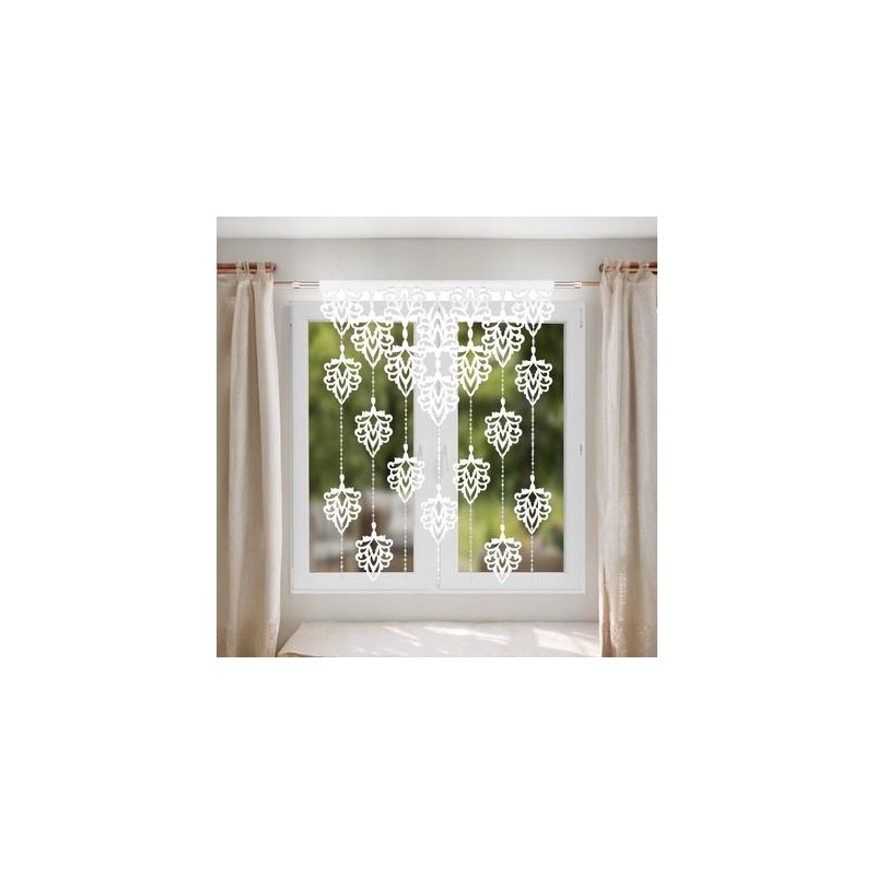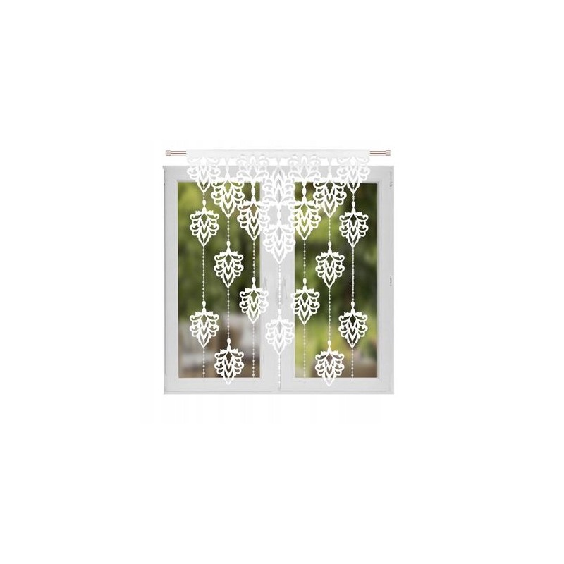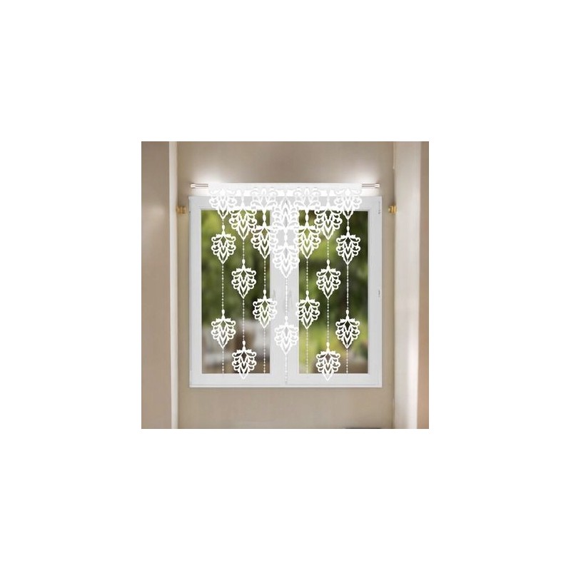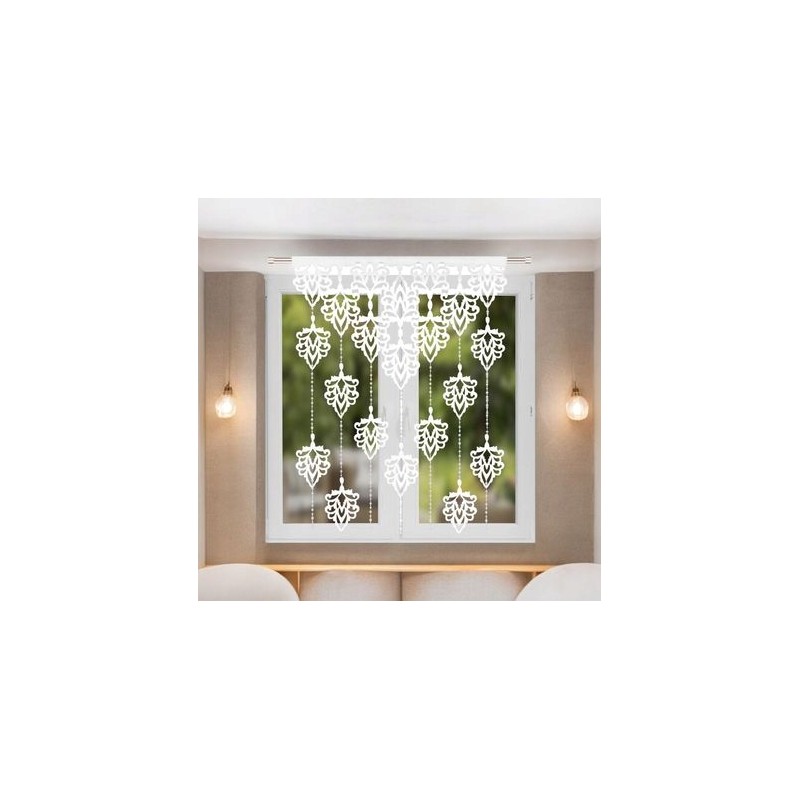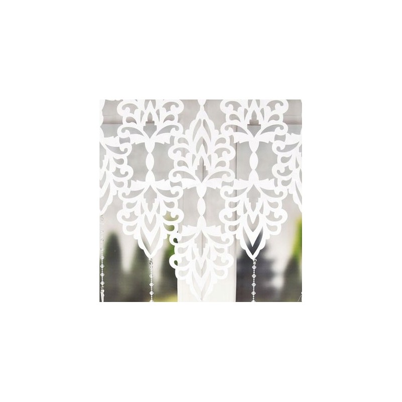 Panou de fereastră alb din fetru 100x150 cm, cu frunze decupate şi mărgele decorative, uşor de montat pe galerie tubulară sau cu cleme.