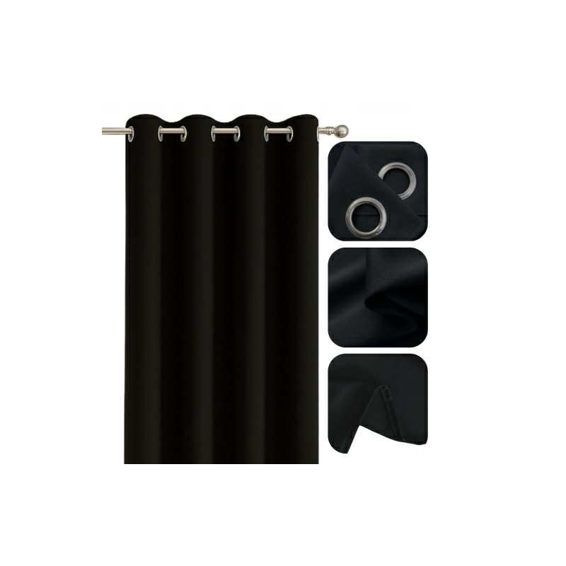 Draperie glamour din velur negru 140x230 cm, din velur mat 100% poliester, cu inele pentru galerie, cu efect de atenuare a luminii şi întreţinere uşoară.