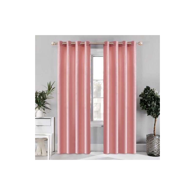 Draperie din catifea stil glamour, în nuanţă roz pudrat, 140 x 250 cm, cu inele pentru galerie, care filtrează lumina, oferă intimitate şi adaugă interiorului un aspect elegant şi primitor.