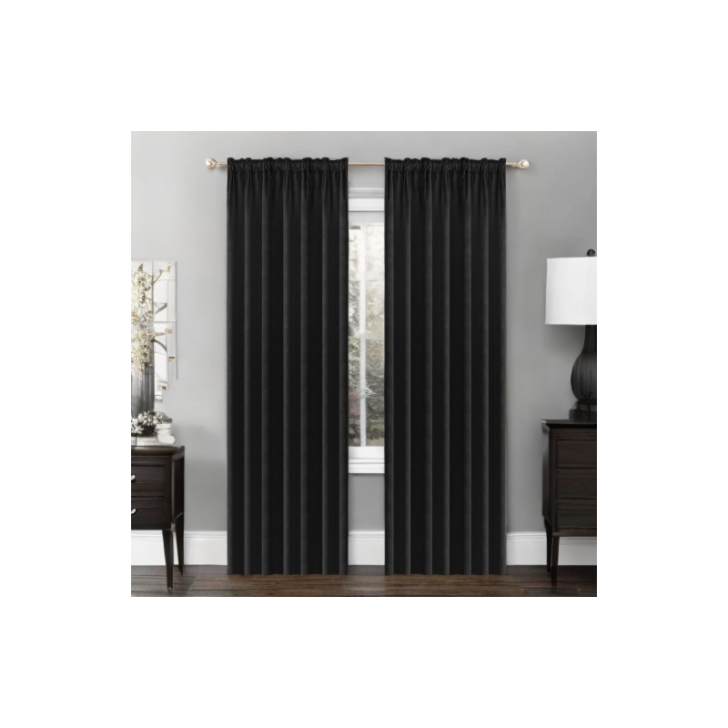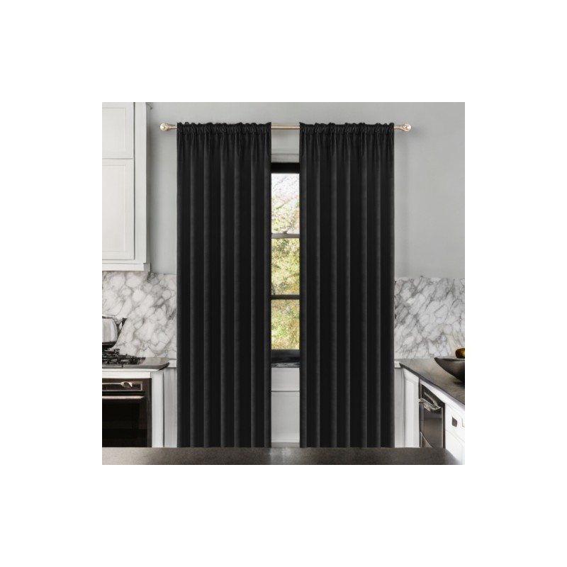 Nuanţa de negru intens accentuează caracterul rafinat al draperiei şi aduce un plus de profunzime şi eleganţă în interior. Culoarea închisă se potriveşte cu multe stiluri de amenajare, iar textura de catifea susţine stilul glamour şi transformă fereastra într-un punct vizual important. Draperia se integrează uşor atât în interioare moderne, cât şi clasice, completând cu bun gust livingul, dormitorul sau un birou elegant.