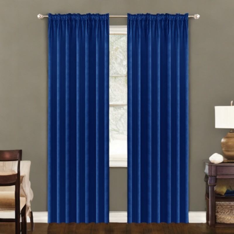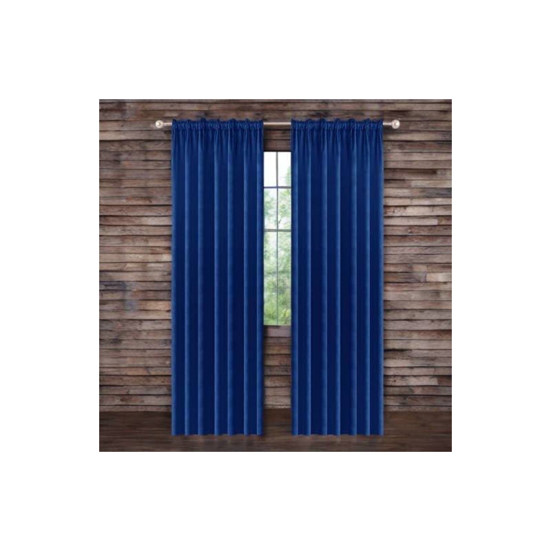 Draperie din catifea bleumarin, opacă, 140 x 230 cm, cu bandă pentru încreţire, care oferă eleganţă, protecţie împotriva luminii şi mai multă intimitate în interior.