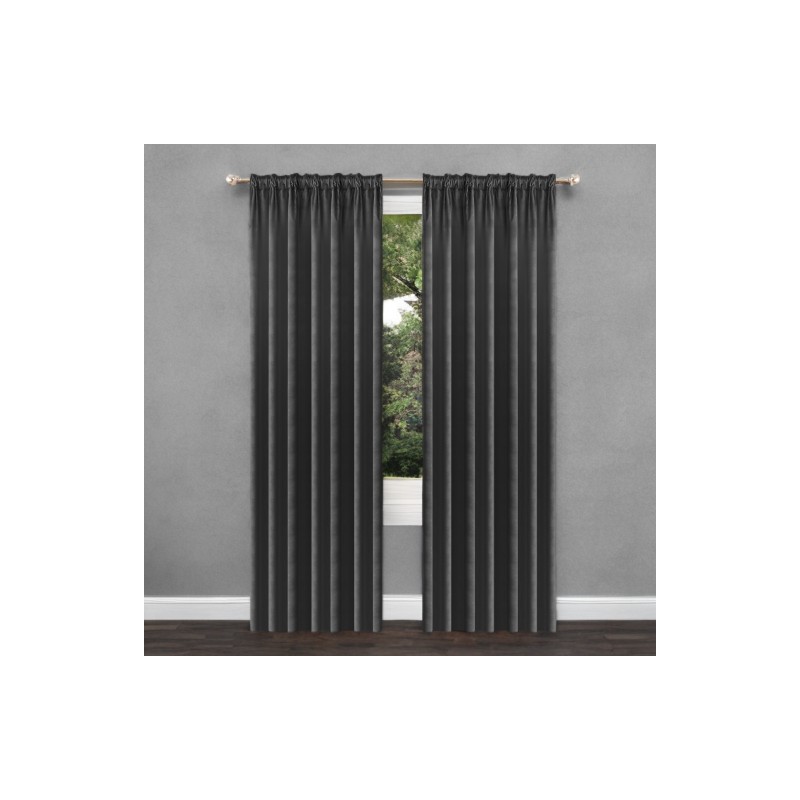 Draperie din catifea gri închis, opacă, 140 x 230 cm, cu bandă pentru încreţire, care oferă eleganţă, protecţie împotriva luminii şi mai multă intimitate în interior.