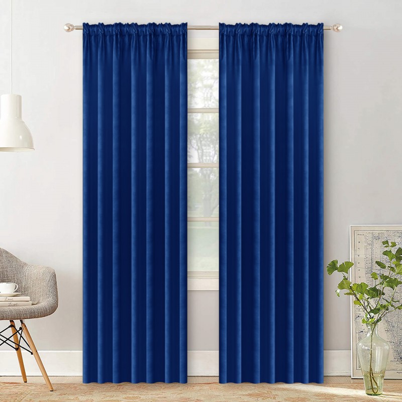 Draperie din catifea bleumarin, opacă, 140 x 250 cm, cu bandă pentru încreţire, care oferă eleganţă, protecţie împotriva luminii şi mai multă intimitate în interior.