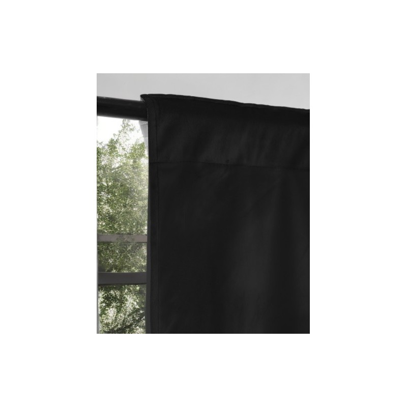 Draperie din catifea neagră, opacă, 140 x 270 cm, cu bandă pentru încreţire, care oferă eleganţă, protecţie împotriva luminii şi mai multă intimitate în interior.