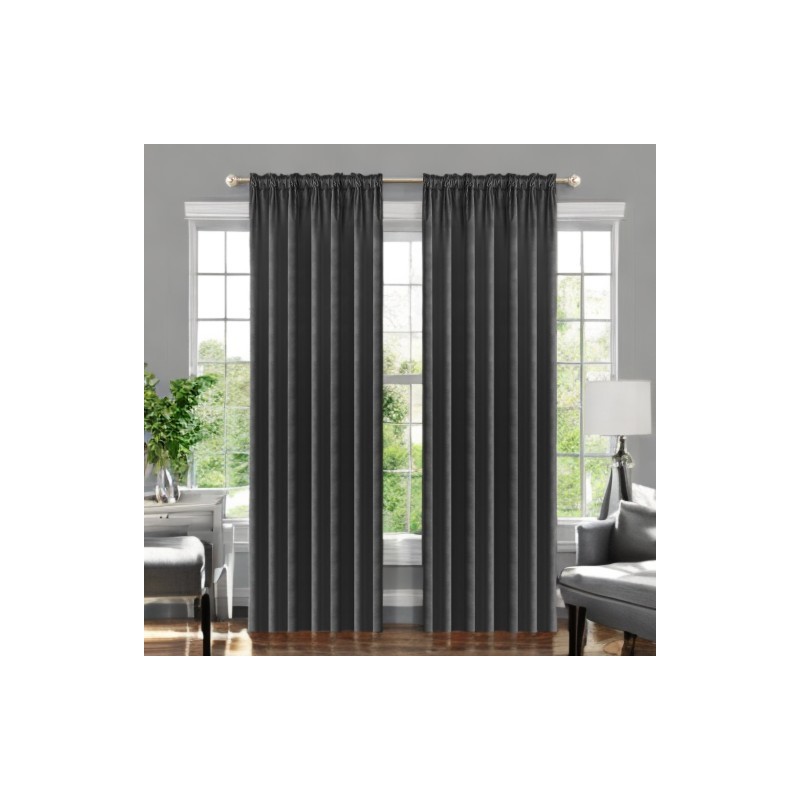 Draperie din catifea gri închis, opacă, 140 x 270 cm, cu bandă pentru încreţire, care oferă eleganţă, protecţie împotriva luminii şi mai multă intimitate în interior.