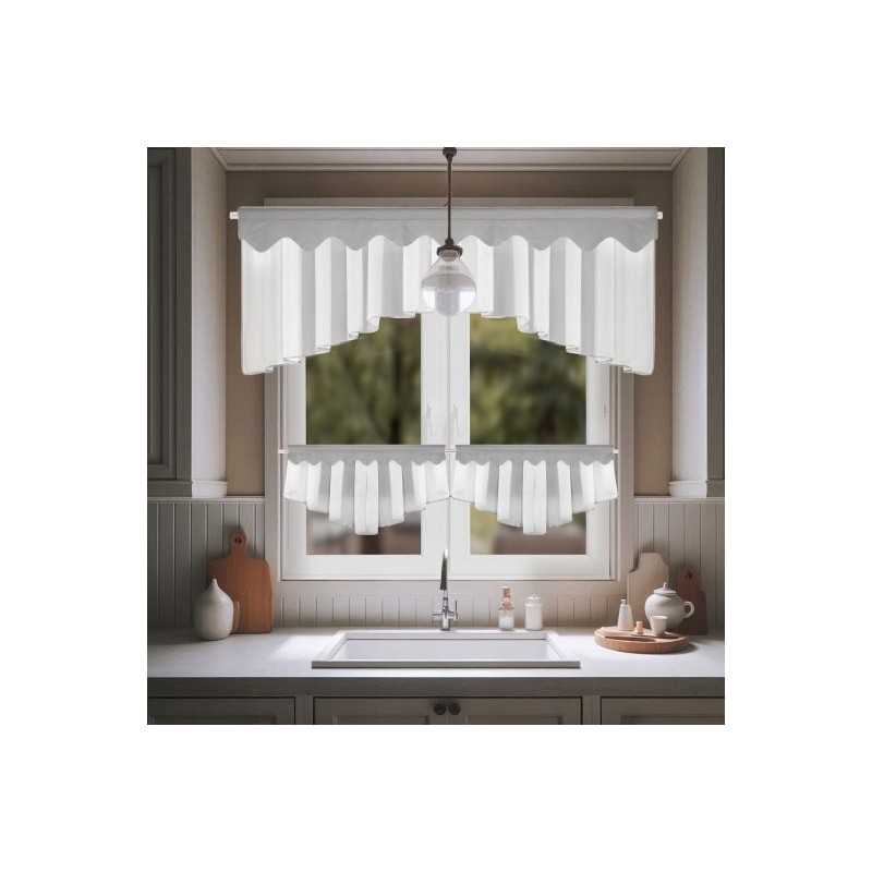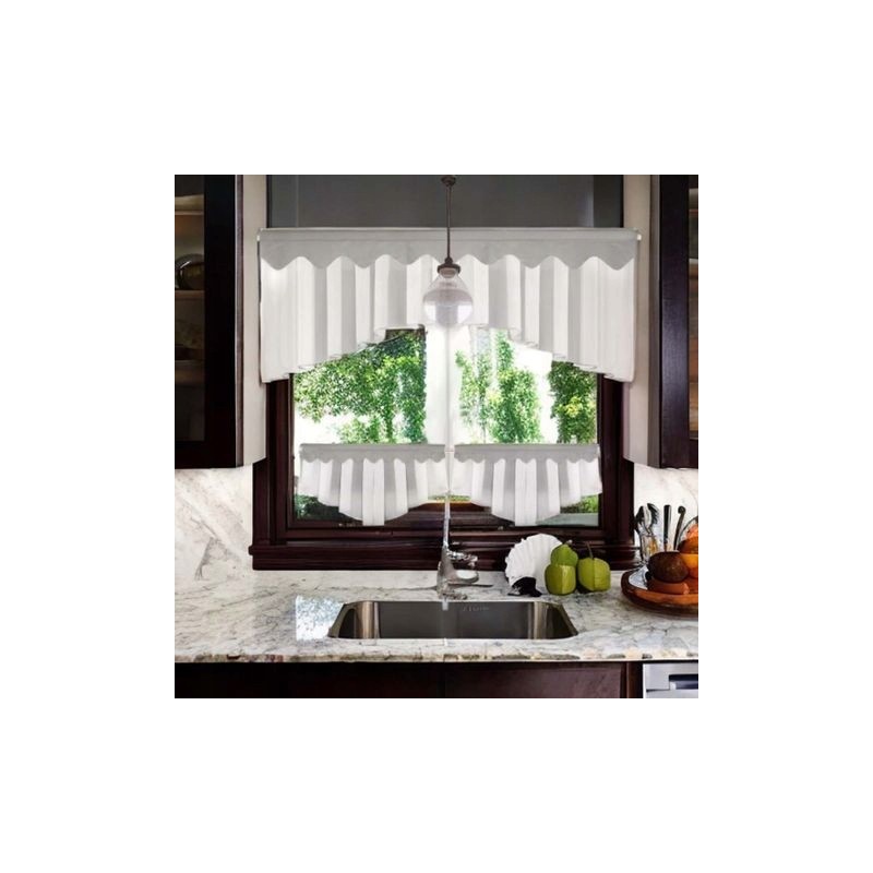 Setul include perdele tip cafenea şi o perdea de bucătărie mai lungă, realizate din voal.