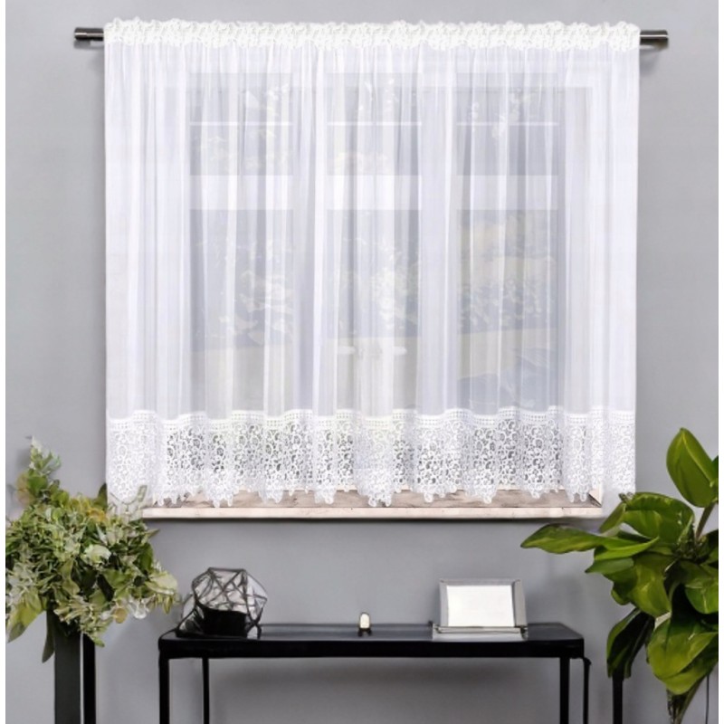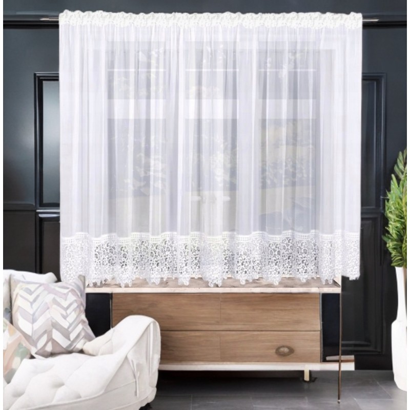 Această perdea este alegerea potrivită atunci când vrei un decor aerisit, dar cu un detaliu care atrage privirea. Voalul alb, uşor, difuzează lumina şi creează o atmosferă luminoasă şi primitoare. Dantela de 30 cm cu fir uşor strălucitor adaugă un plus de caracter şi un finisaj cu aspect luxos. Se potriveşte în amenajări clasice sau moderne şi arată foarte bine în living, dormitor sau dining. Din cauza procesului de producţie, timpul de livrare este mai lung.