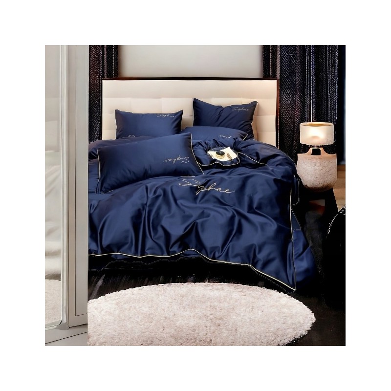 Albastrul închis aduce un accent elegant şi profund în dormitor, iar broderia decorativă şi bordura completează totul cu un efect premium. Este o alegere stilată, care arată foarte bine pe pat şi creează o atmosferă calmă şi îngrijită.