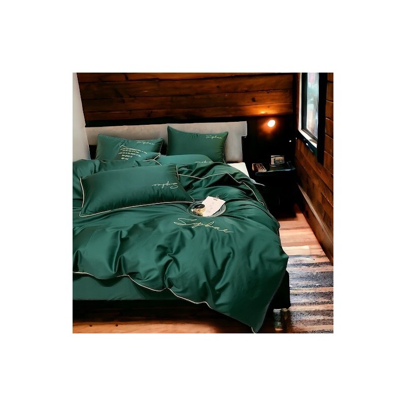 Set de lenjerie din microfibră 200x220 cm, verde, cu broderie elegantă şi bordură. Moale, respirabil şi hipoalergenic, uşor de întreţinut, cu închidere cu fermoar – confort şi stil în fiecare zi.