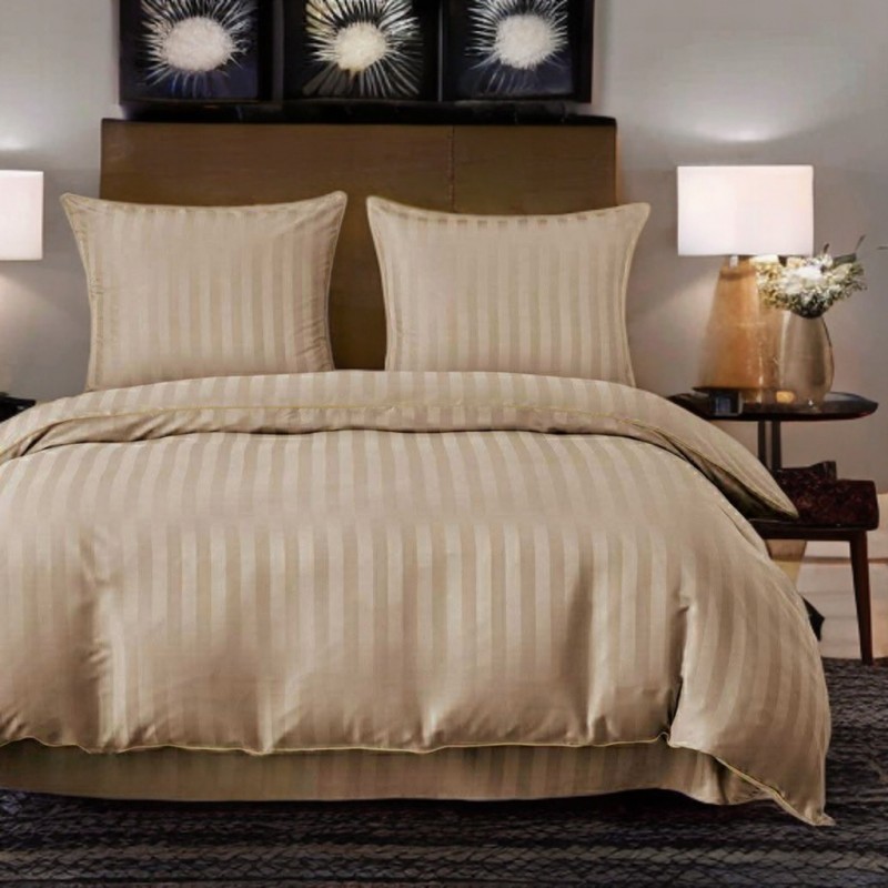Set de lenjerie din damasc 160x200 cm, în culoarea bej, cu luciu discret şi model în relief. Moale, respirabilă, rezistentă şi practică datorită închiderii cu fermoar. Din cauza procesului de producţie, timpul de livrare este mai lung.